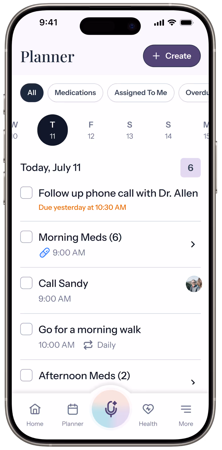 A single place for employees to easily organize medications, documents, appointments, tasks and more, helping them stay present and confident at work all day long.